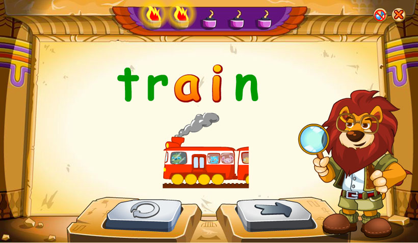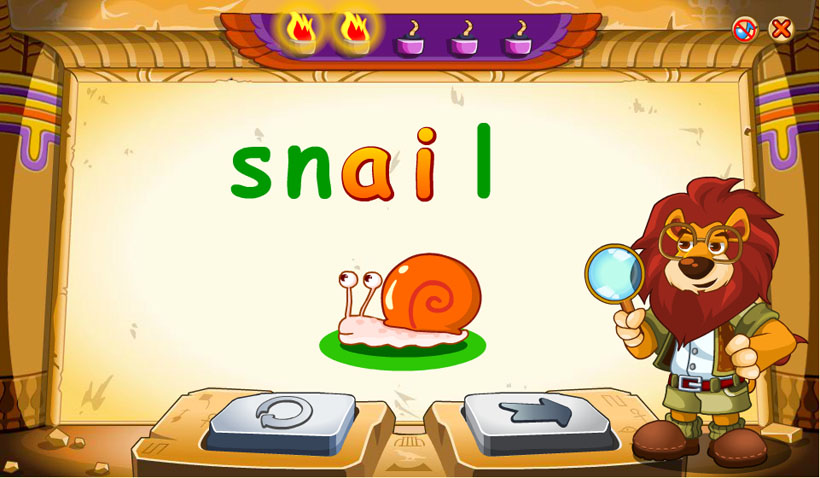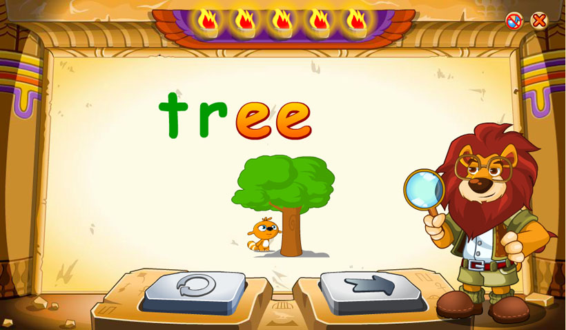 在英语学习中,字母组合的发音是有一定规律的,在了解字母的发音规则后,以后看到一个生词,就算看不到音标,也能基本准确地读出来。之前的Star Sounds(星光练声室)可以训练孩子们元音字母的发音,现在,爱乐奇推出Sphinx Spelling(神庙拼拼看),来训练孩子们字母组合的发音。