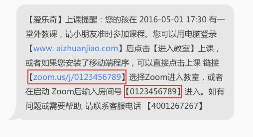 上课前您会收到上课短信提醒,其中包含移动端上课链接